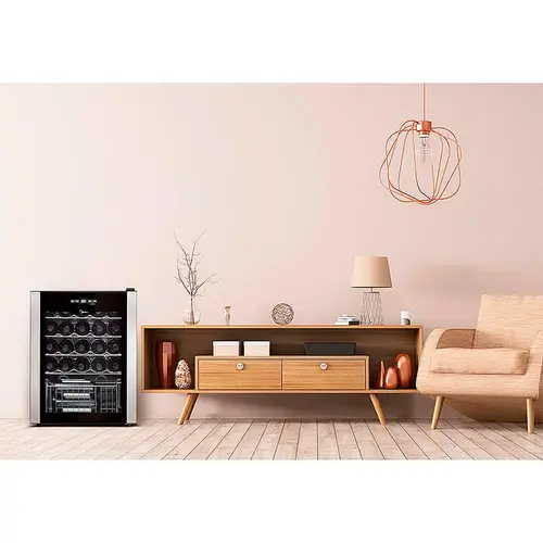 O design moderno da Adega 24 garrafas é um ponto forte. Com vidro transparente para facilitar a visualização da parte interna, iluminação em LED branco e acabamento em inox, ela combina com qualquer ambiente da casa. Além disso, as prateleiras cromadas são ergonômicas e muito mais resistentes, oferecendo a capacidade perfeita das garrafas.